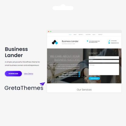 GretaThemes Business Lander, firmanız için modern ve esnek bir web sitesi oluşturmanıza yardımcı olan profesyonel bir premium WordPress temasıdır. Hemen satın alın ve işinizi büyütün!