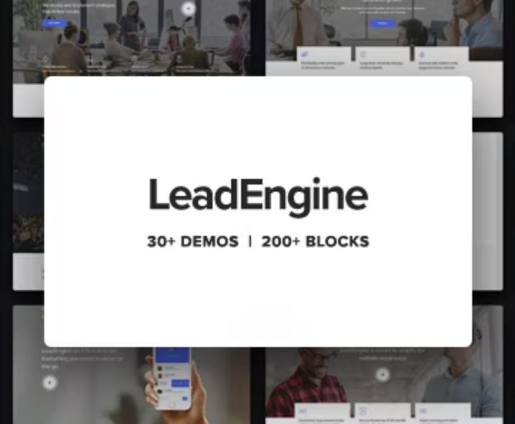Tema paketi, kendi tasarımınızı oluşturmak veya sitenizi sıfırdan oluşturmak için demo sürümlerinin öğelerini karıştırmayı ve eşleştirmeyi kolaylaştıran ünlü WPBakery Sayfa Oluşturucu aracını içerir. Göz atabileceğiniz ve doğrudan sayfanıza aktarabileceğiniz 200’den fazla orijinal tasarımlı şablon bloğu ile LeadEngine, web sitenizin ön ucunda gerçek zamanlı olarak çarpıcı sayfalar tasarlamanıza olanak tanır.