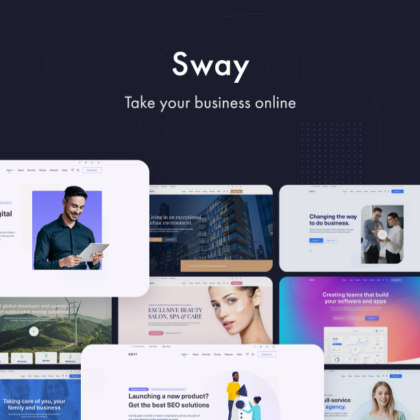 Sway, modern bir görünüme sahip bir işletme için mükemmel olan heyecan verici ve şık bir tasarım sunar. Kullanıcılarınızda iyi bir ilk izlenim bırakmak işletmenizin web sitesi için çok önemlidir. Sway, özel sektörünüz veya nişiniz göz önünde bulundurularak oluşturulmuş 65’in üzerinde demo ile sağlam bir kullanışlı seçenek yelpazesi sunar ve küçük işletmelere veya kurumsal şirketlere yardımcı olacak kadar güçlüdür.