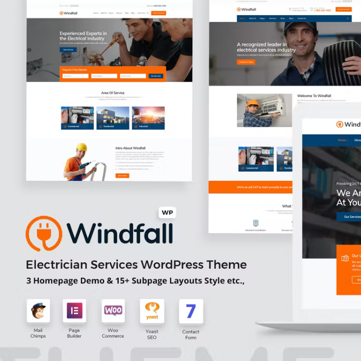 Windfall, elektrikçi ve elektrik hizmetleri şirketi için süper işlevsel bir WordPress temasıdır ve akıllı özellikler ve mükemmel işlevlerle donatılmıştır. Profesyonel bir tema, potansiyel müşterilere kim olduğunuzu söylemek ve onlara işinizde neler yapabileceğinizi göstermek için ihtiyacınız olan her şeye sahiptir. Güzel tasarıma sahip anlayışlı stratejiler, web sitenizi diğerlerinden farklı kılar.
